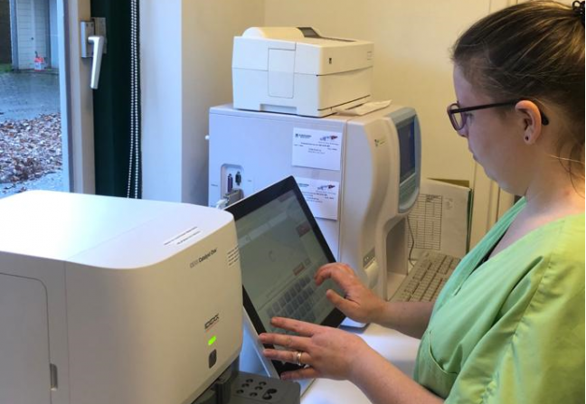 Als uw dier ziek is, kan het nuttig zijn om extra onderzoek te doen bijvoorbeeld naar ontlasting, urine, bloed of weefsel. Door de moderne bloedapparatuur in ons laboratorium kunnen we onderzoek doen naar organen, inclusief hormoontesten zoals progesteron, schildklier of ammoniakbepalingen. Daarnaast hebben we een apparaat voor het onderzoek van bloedcellen wat in het geval van ontstekingen of bloedarmoede van pas komt. Wanneer we weefsel onderzoeken (cytologie) of ontlasting en urine, doen we dit onder de microscoop. Zo kunnen we eventuele ziekten al in een vroeg stadium ontdekken en behandelen.